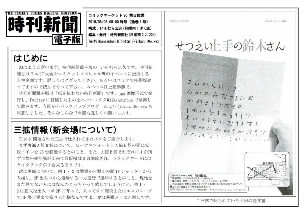 時刊新聞電子版 C96 前日設営(通巻1号)です。