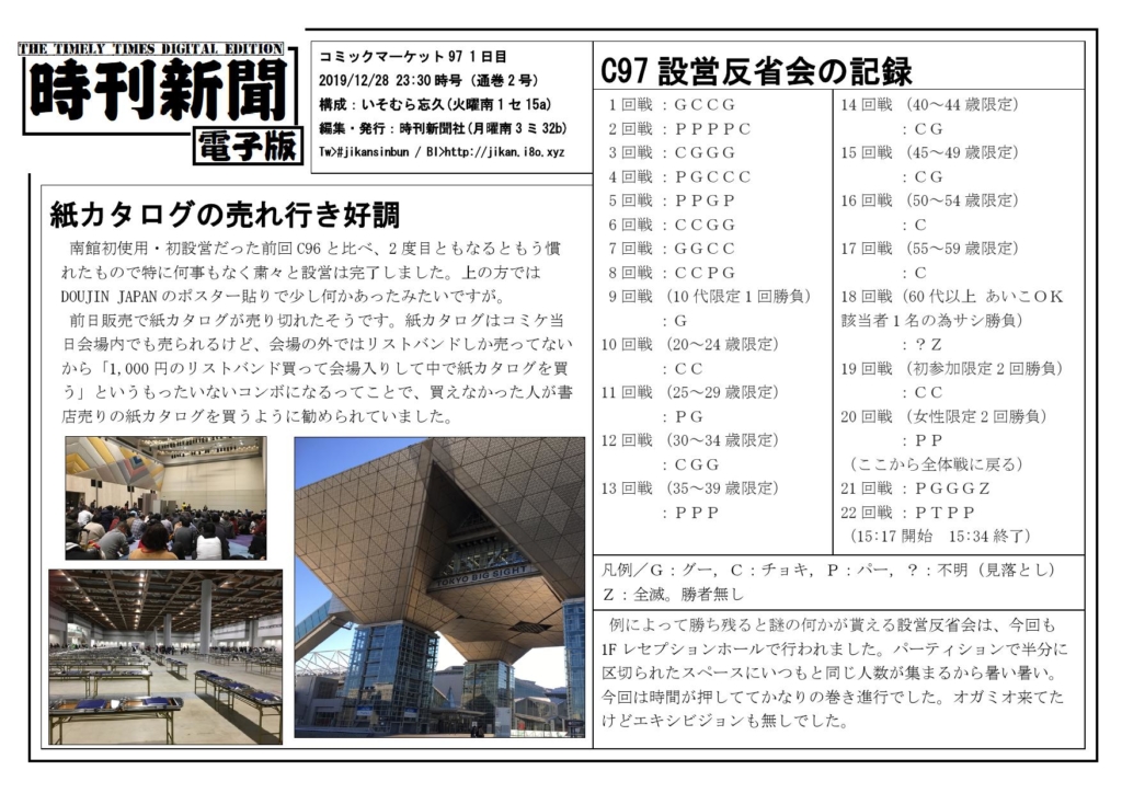 時刊新聞電子版 2019/12/28 C97-022019年12月28日2020年1月5日 時刊新聞電子版 C97 1日目(通巻2号)です。 PDF版:jikan-d c97-02 未分類Posted by i8o